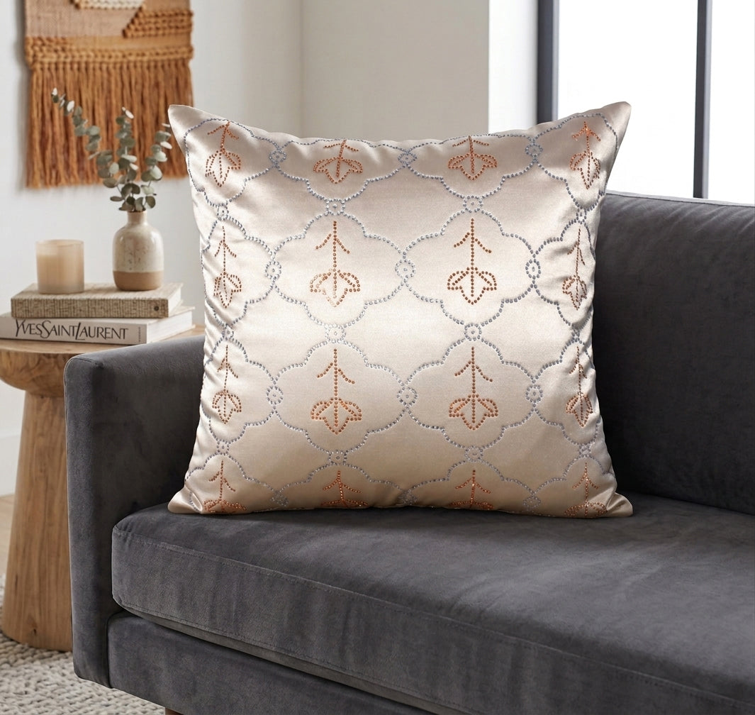 Cushion Cover with Crystal Embellishment in all over Floral Damask Jaal Pattern.