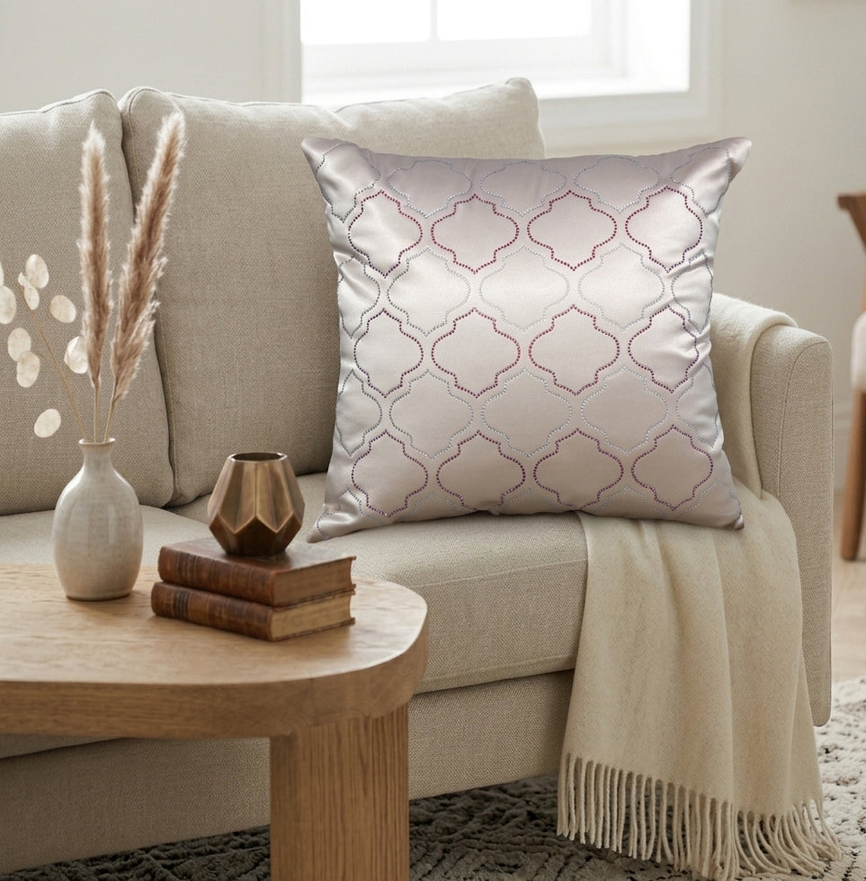 Cushion Cover - Beige Gold in a Red Damask Jaal Pattern