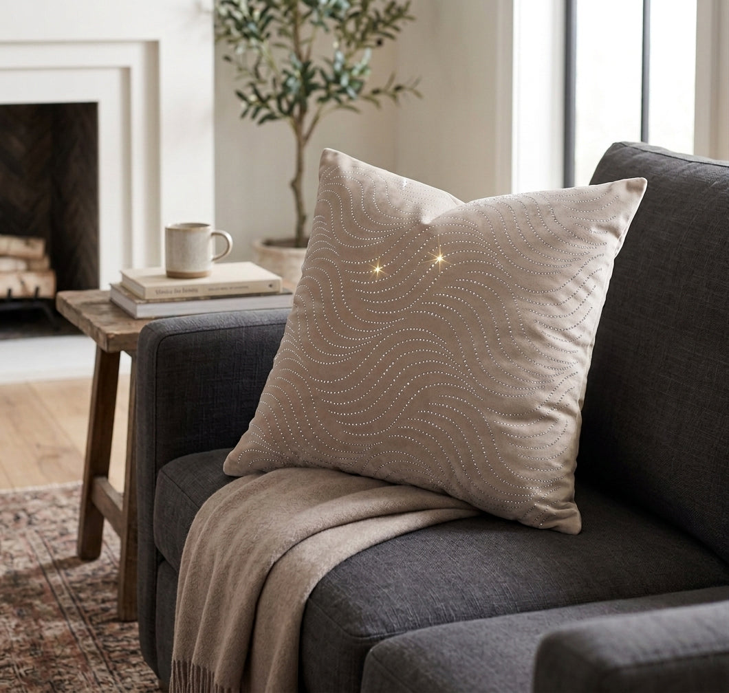 Cushion Cover with Crystal Embellishment in a beautiful Wave Pattern.