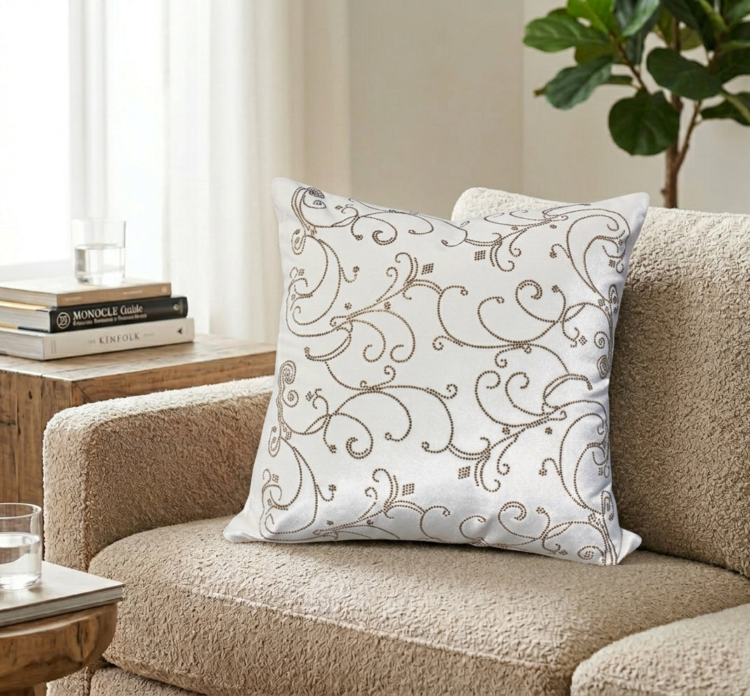 Cushion Cover - Ivory White in an all over Damask jaal pattern.