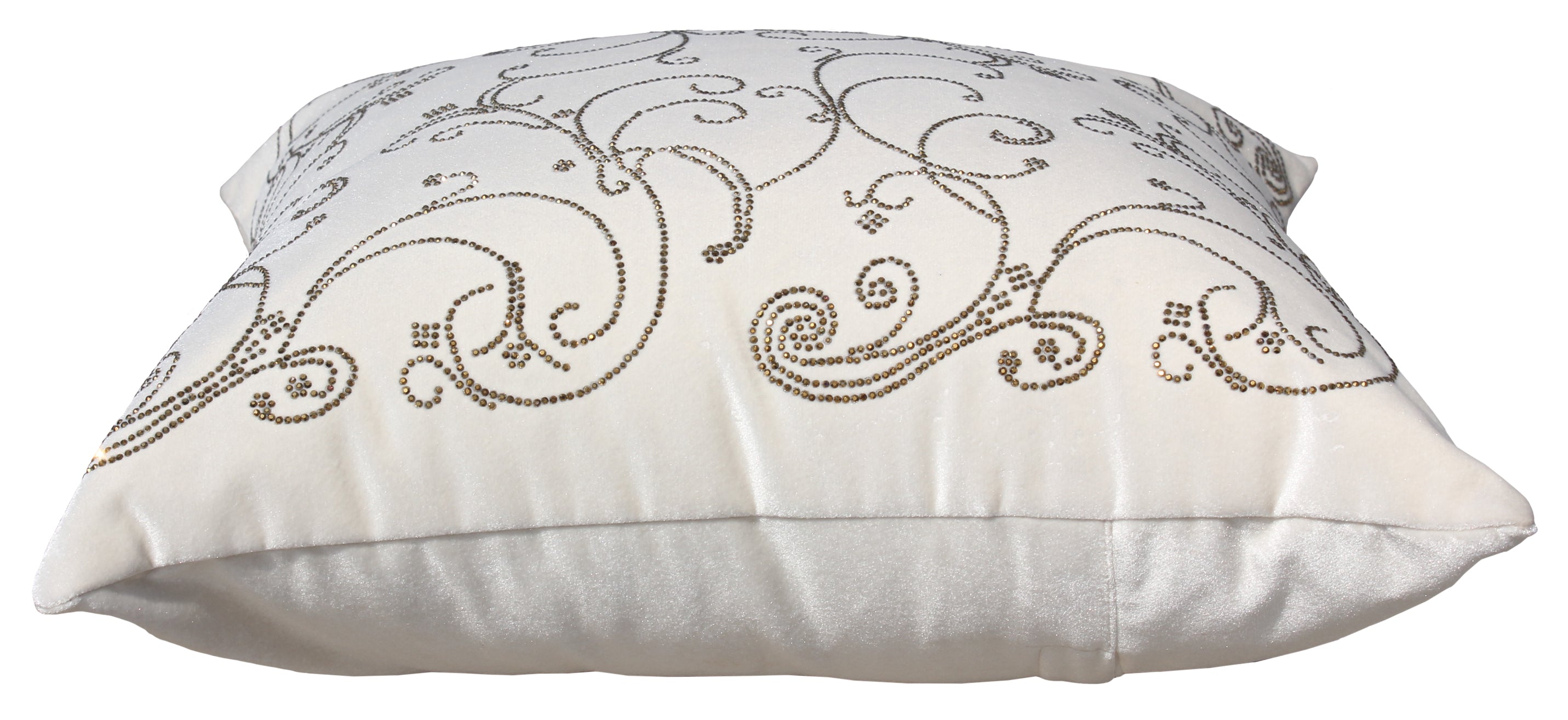 Cushion Cover with Crystal Embellishment in an all over Damask jaal pattern.