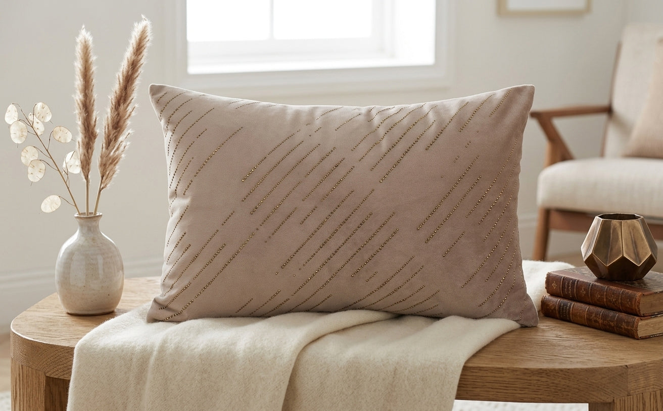 Cushion Cover - Sand Beige in a Broken line Pattern.
